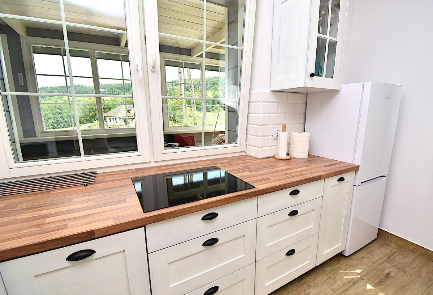Dom z 2 sypialniami. Guests will find a stovetop, a refrigerator, a dishwasher and kitchenware in the fully equipped kitchen. The holiday home also includes a barbecue. Boasting a terrace with garden views, this holiday home also features a washing machine and a flat-screen TV with satellite channels. The unit has 5 beds. Dom wakacyjny - 8 osobowy. Powierzchnia pokoju ok.: 95 mkw.