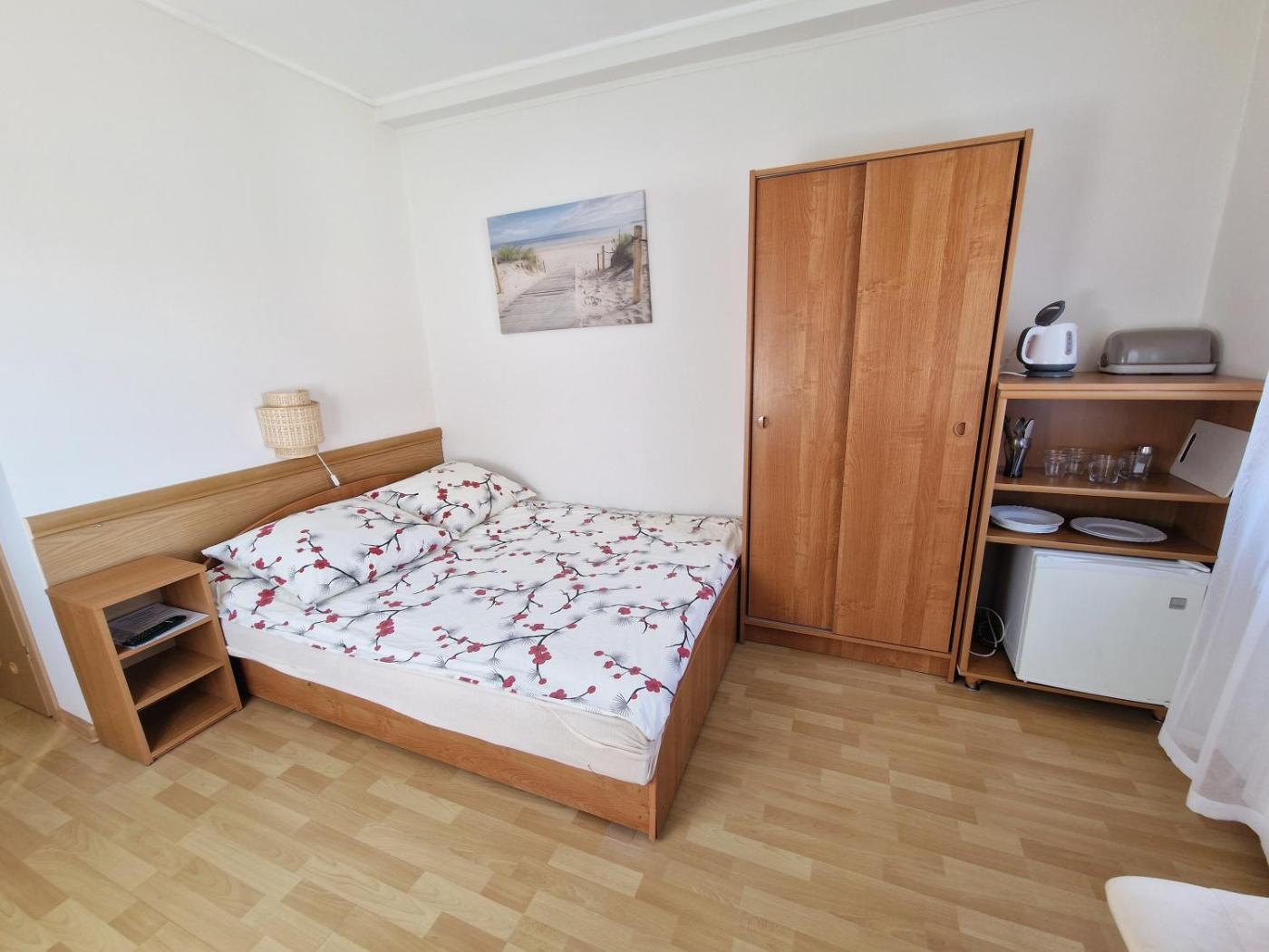 Pokój czteroosobowy z tarasem. The quadruple rooms kitchenette, which features a refrigerator, is available for cooking and storing food. The quadruple room provides a private entrance, a tea and coffee maker, a terrace with garden views as well as a private bathroom featuring a shower. The unit offers 3 beds. Powierzchnia pokoju ok.: 25 mkw.